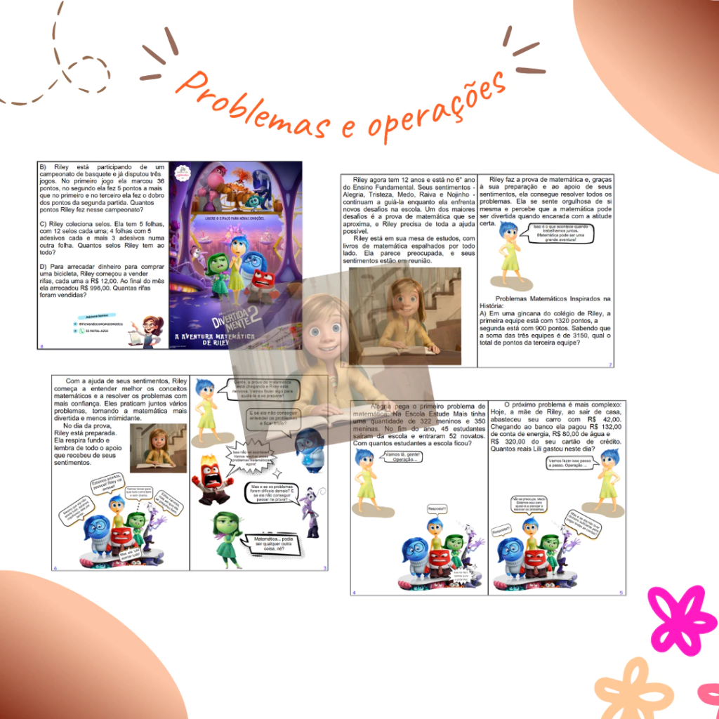 👩🏻💻📚📝 Criamos storytelling envolvendo os personagens de "Divertida Mente 2" (Inside Out 2) e problemas de matemática. A história pode ser usada para envolver os alunos em um cenário divertido e educativo.